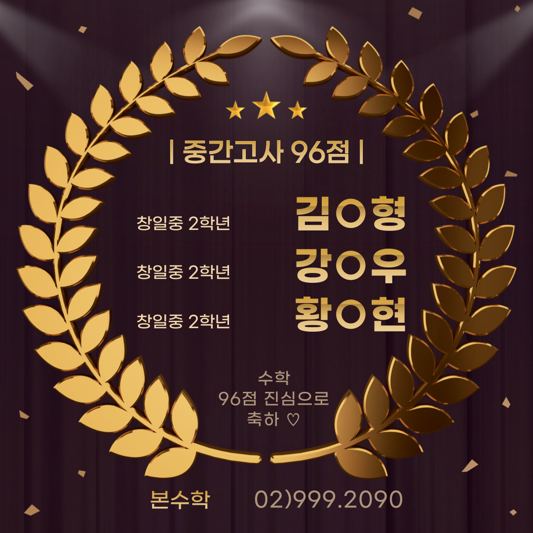 열심히 한만큼 좋은 성과를 보여준 우리 본학원 학생들 이루말 할 수 없이 기쁘고 뿌듯합니다.